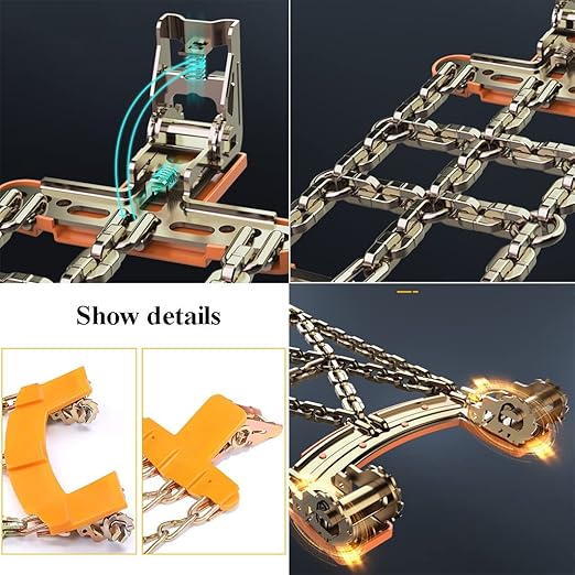 Materiale acciaio al manganese di alta qualità con cinturino di fissaggio in nylon, resistente alla pressione e all’abrasione. Resistente alle basse temperature di meno 50 gradi Celsius Adatte a pneumatici da 165 a 205 mm, queste catene si adattano perfettamente a veicoli di ogni tipo: dalla city car al SUV fino al pick-up. Una volta acquistate, le avrai sempre con te per ogni viaggio, grazie alla loro compattezza e facilità di trasporto. Design centralizzato bilanciato e punto di congelamento. Perfetto per ghiaccio, neve, sabbia, fango, arrampicate e uscite. Leggere e robuste, facili da installare, le nostre catene da neve sono certificate, saranno in grado di garantire efficacemente la sicurezza