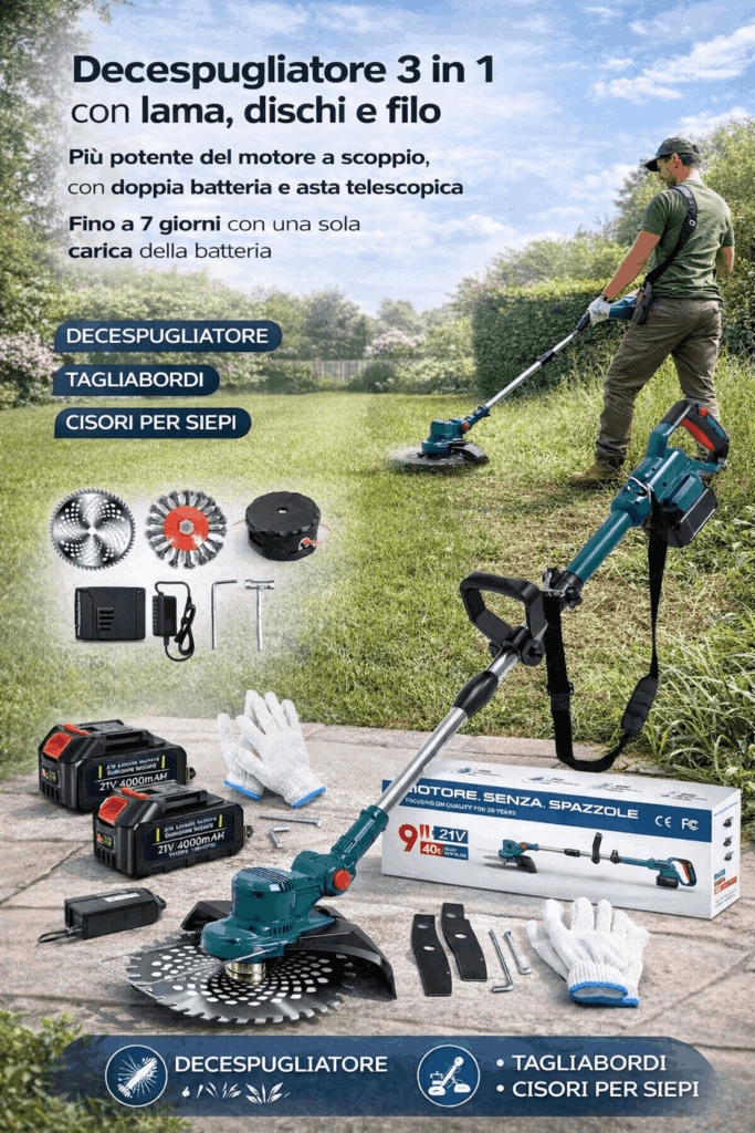 Taglia prati, rami, siepi e cespugli senza che mi stanca in una sola passata