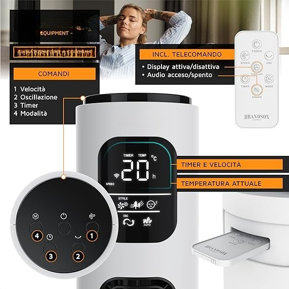Potrai gestire e cambiare i programmi tra riscaldamento, aria calda, riscaldamento rapido, aria fredda e deumidificatore. Inoltre, è possibile impostare timer di spegnimento automatico e un programma giornaliero e settimanale ideale per il tuo ambiente