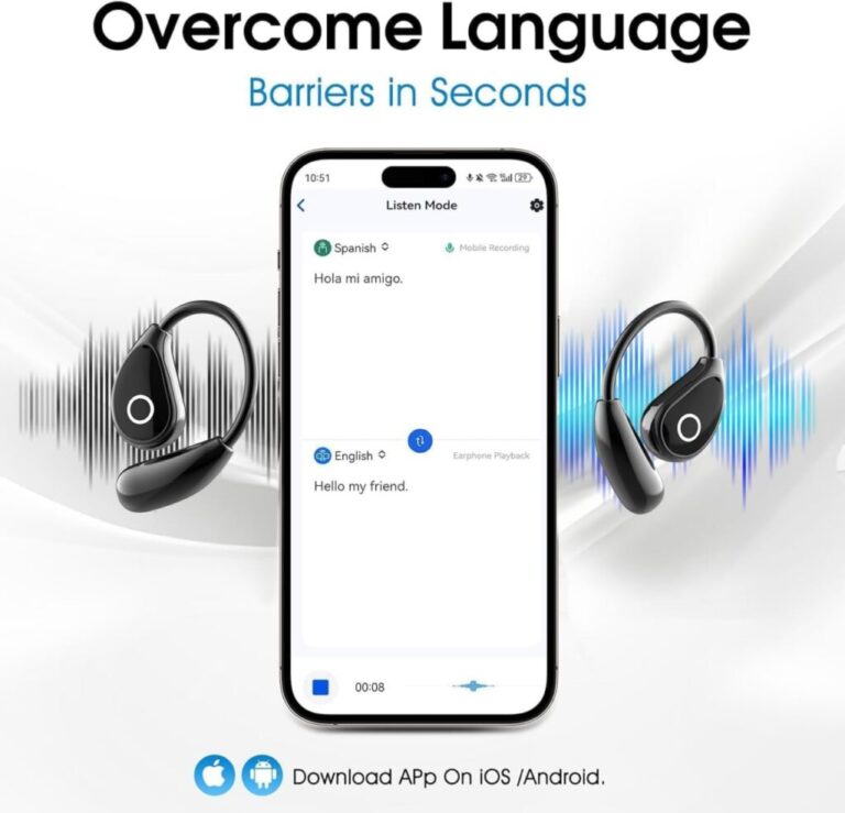 Traduzione in 134 Lingue: Le cuffie traduzione simultanea con intelligenza artificiale forniscono traduzioni in tempo reale e senza interruzioni di 134 lingue, consentendoti di tradurre le conversazioni all’istante e di comunicare senza sforzo.